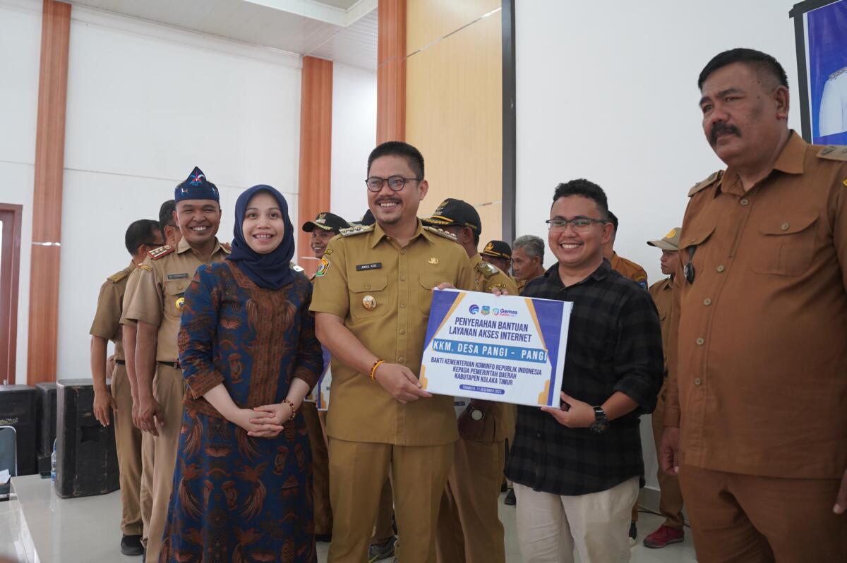 Koltim, Radarsultra.co – Bupati Koltim Abd Azis, menyerahkan bantuan Akses Internet (AI) gratis kepada 29 titik penerima pada acara penyerahan bantuan layanan Akses Internet BAKTI Kementerian Kominfo RI kepada Pemda Koltim, di Aula Rujab Bupati Koltim, Senin (11/12/2023)