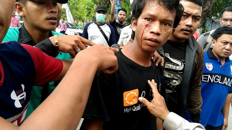 Selain itu, seorang sopir mobil, Abdi (25) warga garsa-gorse pasar baru Kendari yang mengemudikan mobil massa mendapatkan pukulan dimata sebelah kanannya hingga berdarah.
