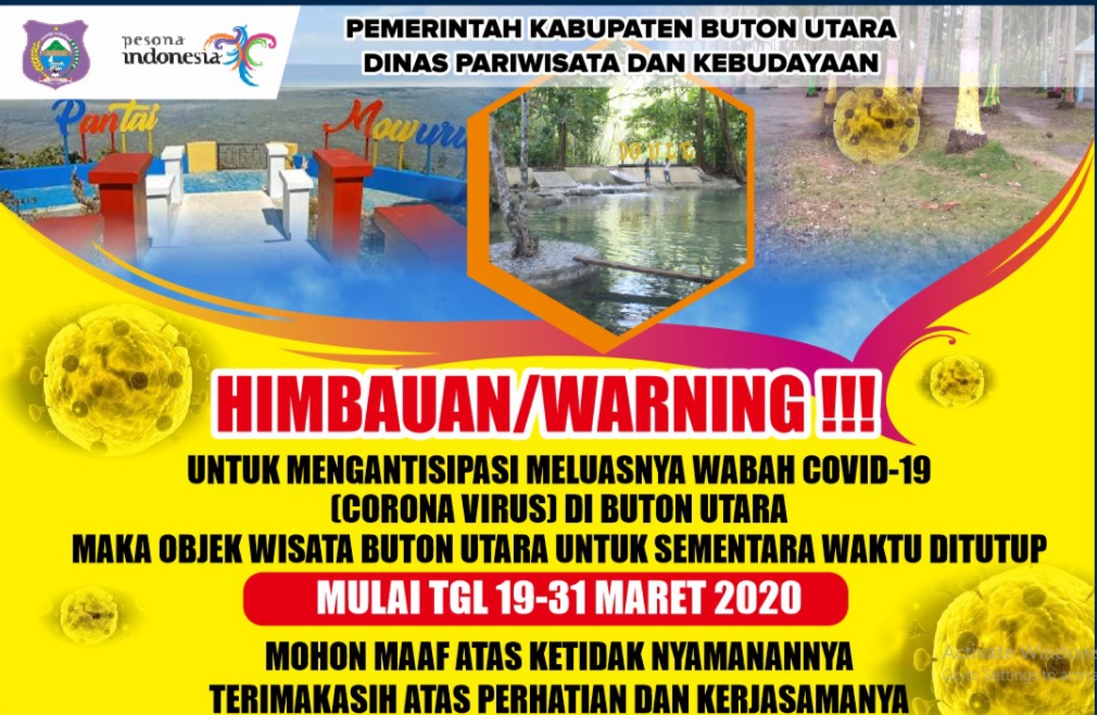 Untuk menindaklanjuti keputusan itu, Dinas Pariwisata dan kebudayaan kabupaten Butur, Harlin Hari, telah melakukan penutupan objek wisata, seperti Pantai Membuku, Pantai Mowuru, Permandian Doule, Pantai Bone dan Permandian Matarombia.