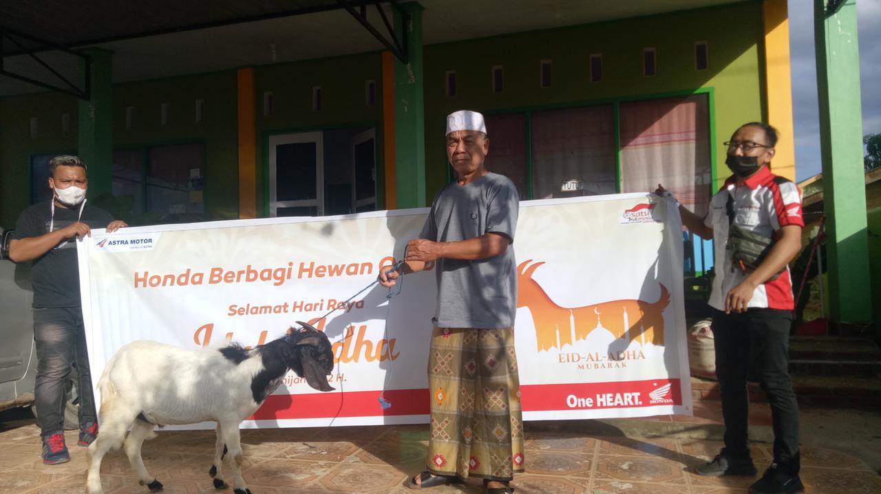 Bantuan berupa 1 ekor kambing di tiap Masjid ini diserahkan langsung oleh Pimpinan Dealer Honda di 13 titik berbeda.