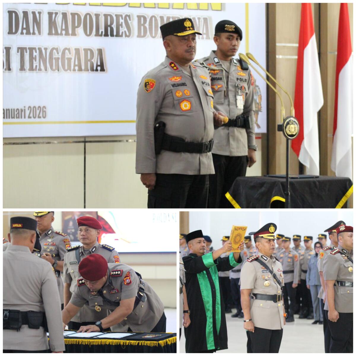 Pergantian juga terjadi pada jabatan Kapolres Bombana. AKBP Wisnu Hadi, S.I.K., M.I.K., yang memperoleh amanah baru sebagai Kapolres Padang Panjang Polda Sumatera Barat, digantikan oleh AKBP Eko Sutomo, S.I.K., M.I.K., yang sebelumnya menjabat Kapolres Bima Polda Nusa Tenggara Barat.