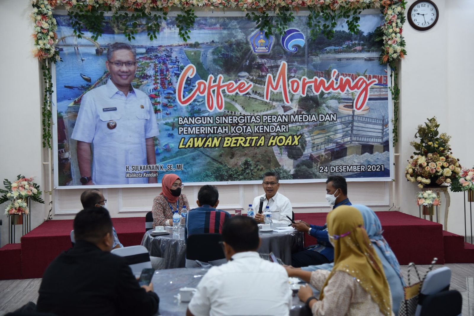Kegiatan Coffee Morning ini mengangkat tema “Bangun Sinergitas peran Media dan Pemerintah Kota Kendari Lawan Berita Hoax” dan kegiatan ini diikuti puluhan jurnalis yang kerap meliput dan memberitakan informasi di lingkungan pemerintah kota Kendari.