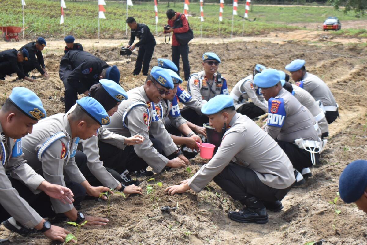 “Kami mendukung penuh program ketahanan pangan ini. Selain melaksanakan pengamanan, kami juga turun langsung dalam proses penanaman sebagai bentuk kontribusi nyata Polri kepada masyarakat,” ujar Kombespol Moch. Sholeh.