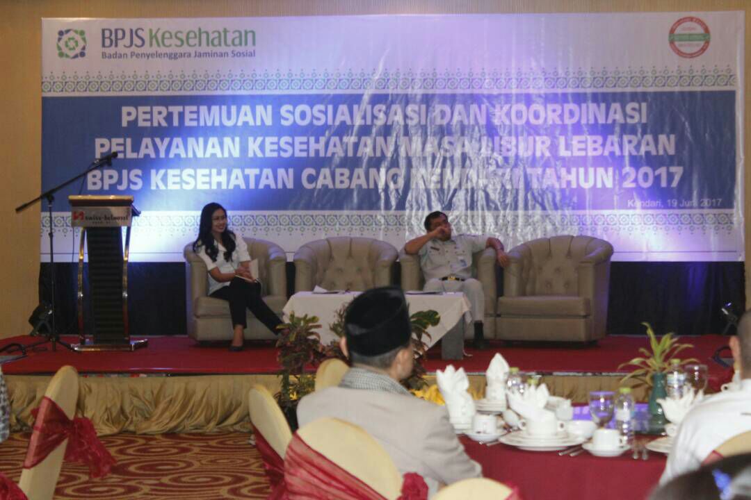 “Sosialisasi ini ditujukan kepada seluruh faskes, sehingga tetap memberikan pelayanan kesehatan pada saat cuti bersama menghadapi lebaran 1438 H. Kami akan memastikan, peserta Jaminan Kesehatan Nasional dan Kartu Indonesia Sehat (JKN-KIS), bisa mendapatkan pelayanan kesehatan tanpa penolakan dari fasilitas kesehatan saat melakukan mudik lebaran,” ungkap Dina Diana usai kegiatan di Swissbell Hotel Kendari, Senin (19/6/2017).
