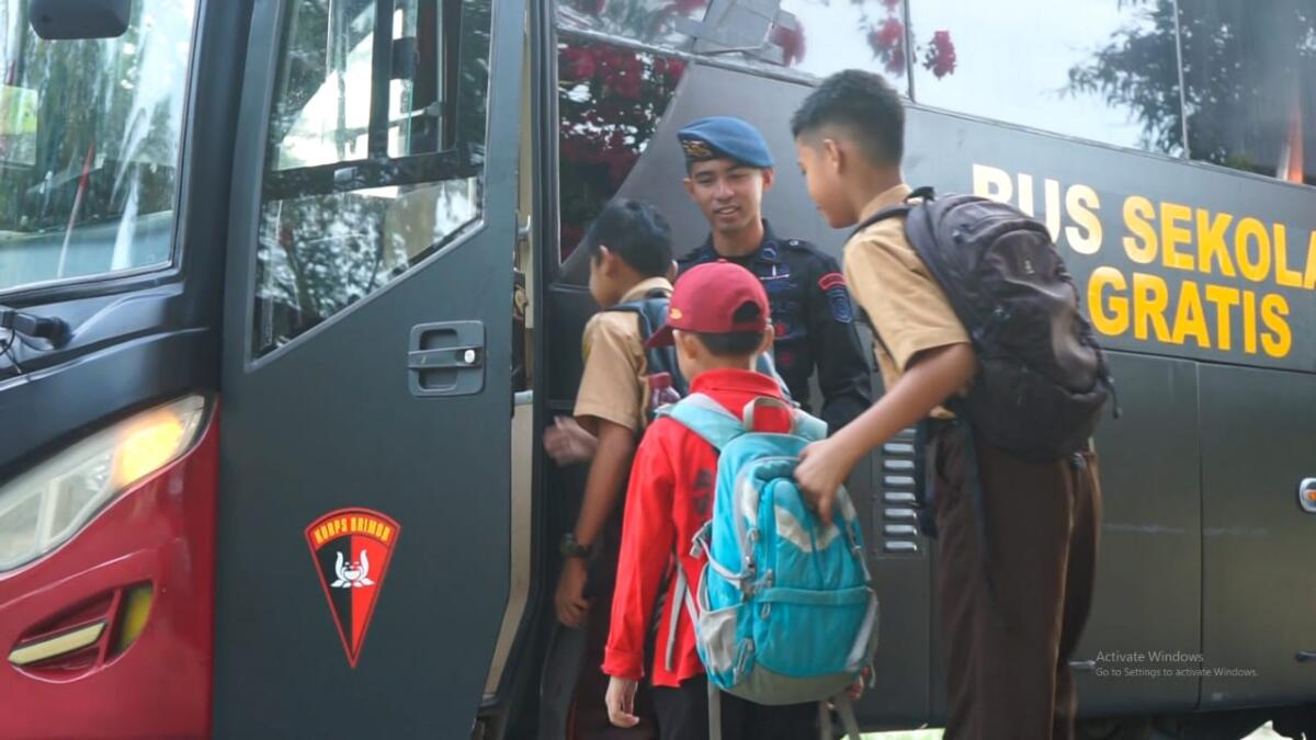 Komandan Satuan (Dansat) Brimob Polda Sultra, Kombes Pol Sugianto Marweki, menjelaskan bahwa satu unit bus dinas Brimob kini difungsikan sebagai kendaraan antar-jemput pelajar setiap hari sekolah.