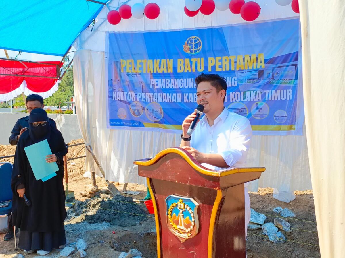 Koltim, Radarsultra.co – Bertempat di Kompleks Perkantoran Pemda Kolaka Timur (Koltim), di Desa Lalingato, Bupati Koltim Abd Azis SH MH, meletakkan batu pertama pembangunan Gedung Kantor Pertanahan (Kantah) Kabupaten Koltim pada Sabtu (17/8/2024) usai pelaksanaan Upacara Pengibaran Bendera Merah Putih, dalam rangka peringatan HUT Ke-79 RI Tahun 2024 tingkat Kabupaten Koltim di Kecamatan Ladongi.