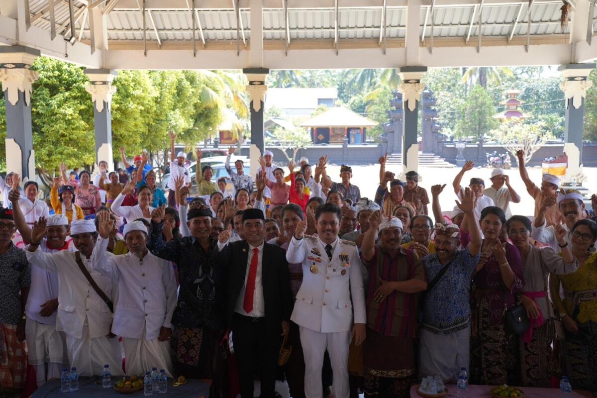 “Bapak ibu semua, harapan dan aspirarasi terkait akses jalan hari ini sudah mulai dirasakan. Untuk kelancaran bapak dan ibu dalam beribadah tinggal menunggu administrasi di aset untuk di tuntaskan. Dan untuk pagar pura yang tadinya diarah timur, akan dilakukan pembongkaran untuk dibagun dari arah barat,” ucapnya.
