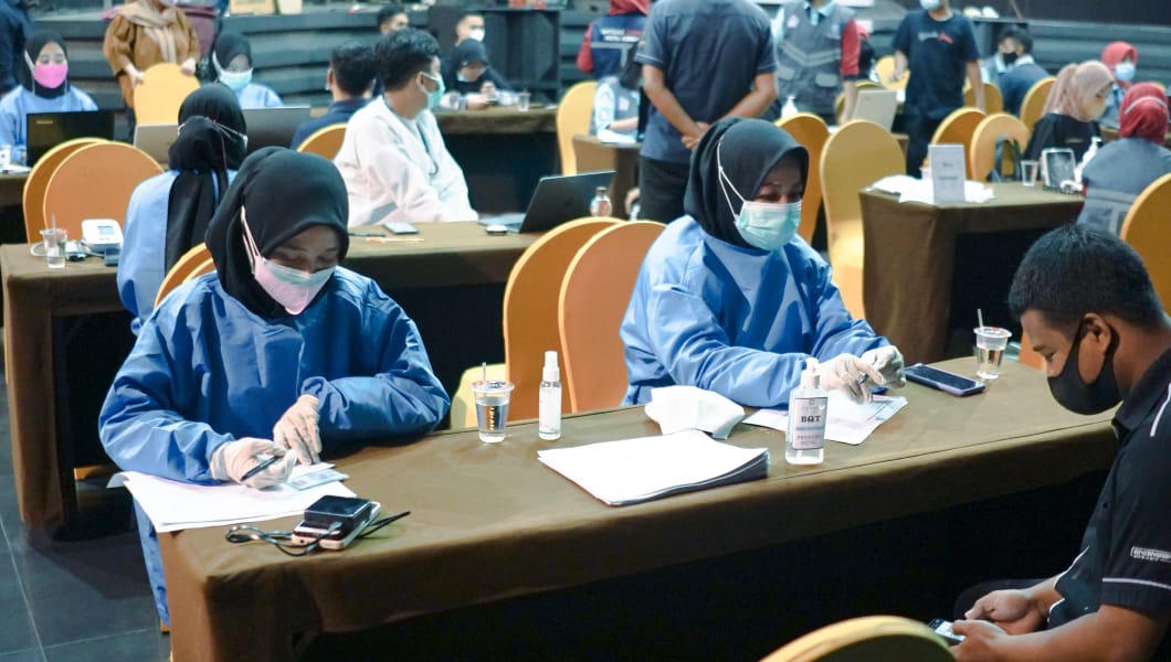 Vaksinasi tersebut secara langsung dikoordinir oleh Dinas Kesehatan Kota Kendari dan dengan antusias diikuti oleh seluruh karyawan hotel Claro.