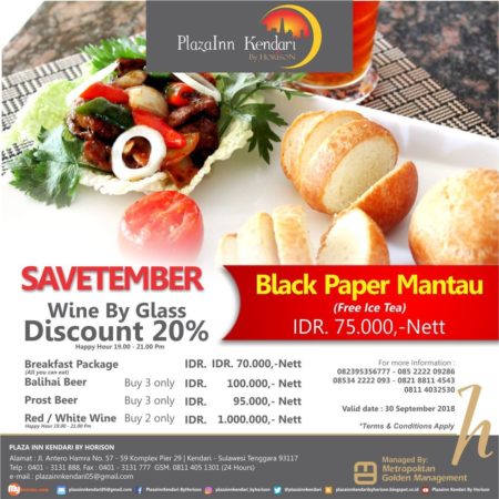 “Black paper Mantau merupakan sebuah hidangan simpel dan mengenyangkan, terdiri dari mantau dan sapi lada hitam yang disajikan dengan ala Plaza Inn” ungkapnya dalam pers rilis, Kamis, (06/09/2018).