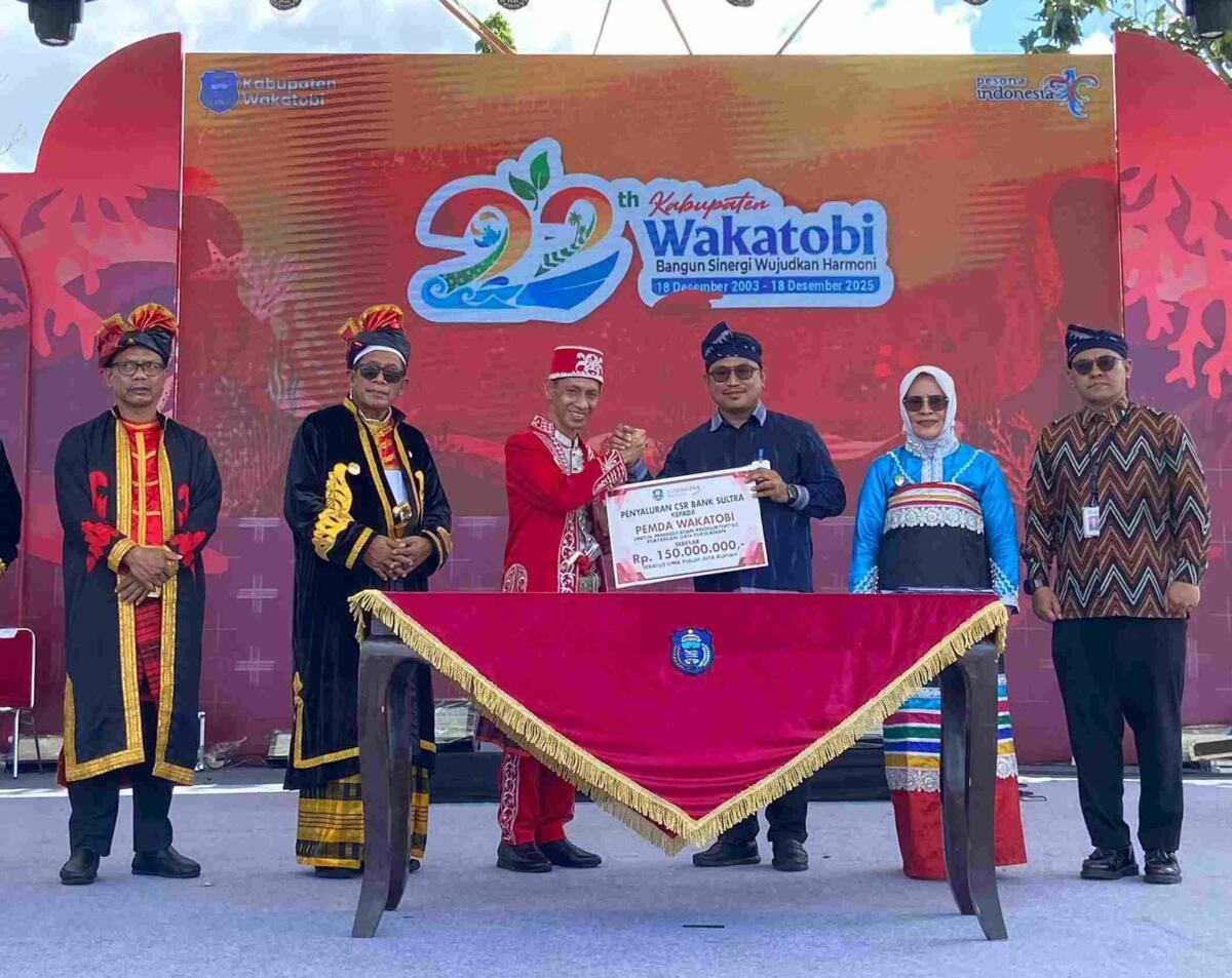 Di Kabupaten Wakatobi, Bank Sultra juga menyalurkan CSR senilai Rp150 juta yang diserahkan oleh Kepala Cabang Bank Sultra Wakatobi, Syahrul Hidayat, kepada Bupati Wakatobi, Haliana, usai peringatan HUT ke-22 Wakatobi di Alun-Alun Merdeka, Wangi-Wangi. Penyerahan tersebut turut disaksikan Wakil Gubernur Sulawesi Tenggara, Hugua.