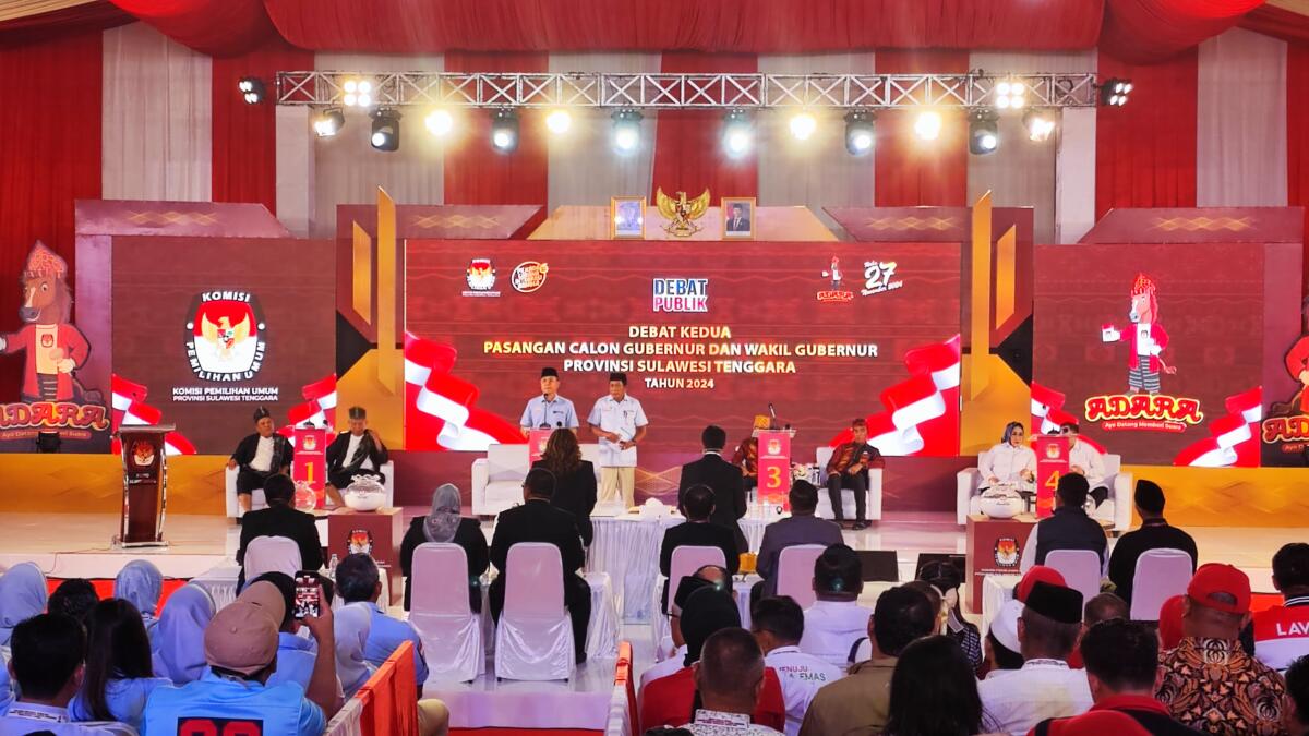 Kolaka, Radarsultra.co – Komisi Pemilihan Umum (KPU) Sulawesi Tenggara (Sultra) menggelar Debat Publik Kedua Pilgub Sultra yang bertempat di Hotel Sutan Raja, Kabupaten Kolaka, Jumat (1/11/2024).