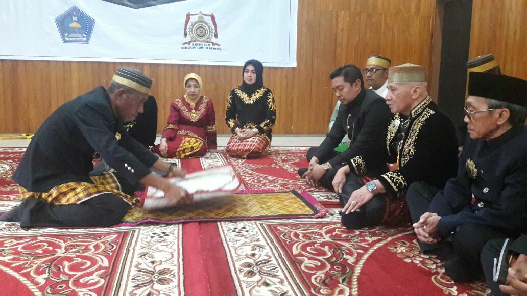 Kendari, Radarsultra.co.id – Dewan Adat Kerajaan Laiwoei resmi dikukuhkan, yang dilakukan oleh Mokole Wewulaa Ikowuta Laiwoei Ikonawe, Drs. H. Irwan Tekaka Sao-Sao yang dihadiri oleh Wali Kota Kendari Adriatma Dwi Putra (ADP) bersama Ketua Tim Penggerak PKK Kota Kendari dr. Hj Siska Karina Adriatma bertempat di Aula Bertakwa Kantor Walikota Kendari, Senin (13/11/17).