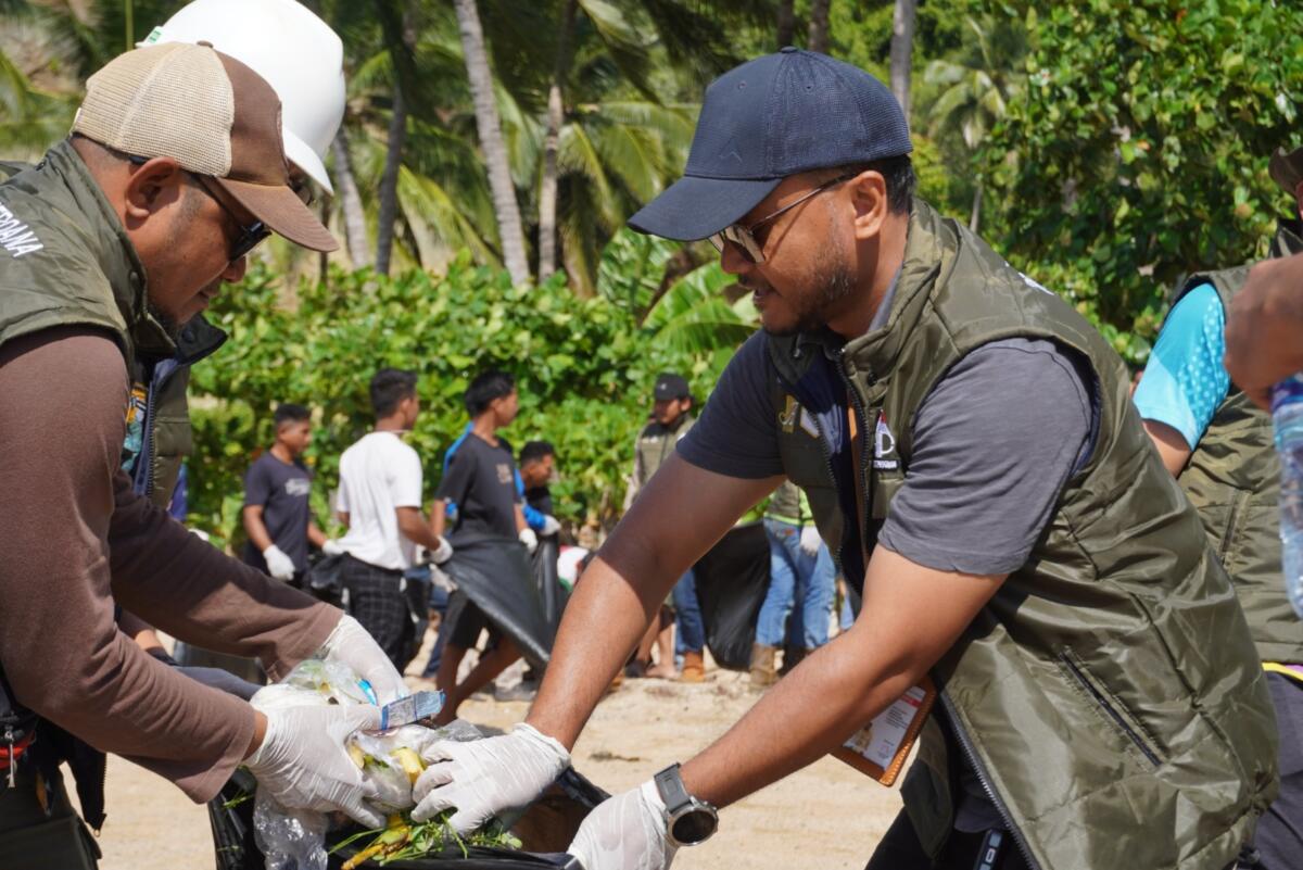 Karyawan dari berbagai departemen, bersama dengan warga Nambo Jaya, bergotong royong membersihkan pantai.