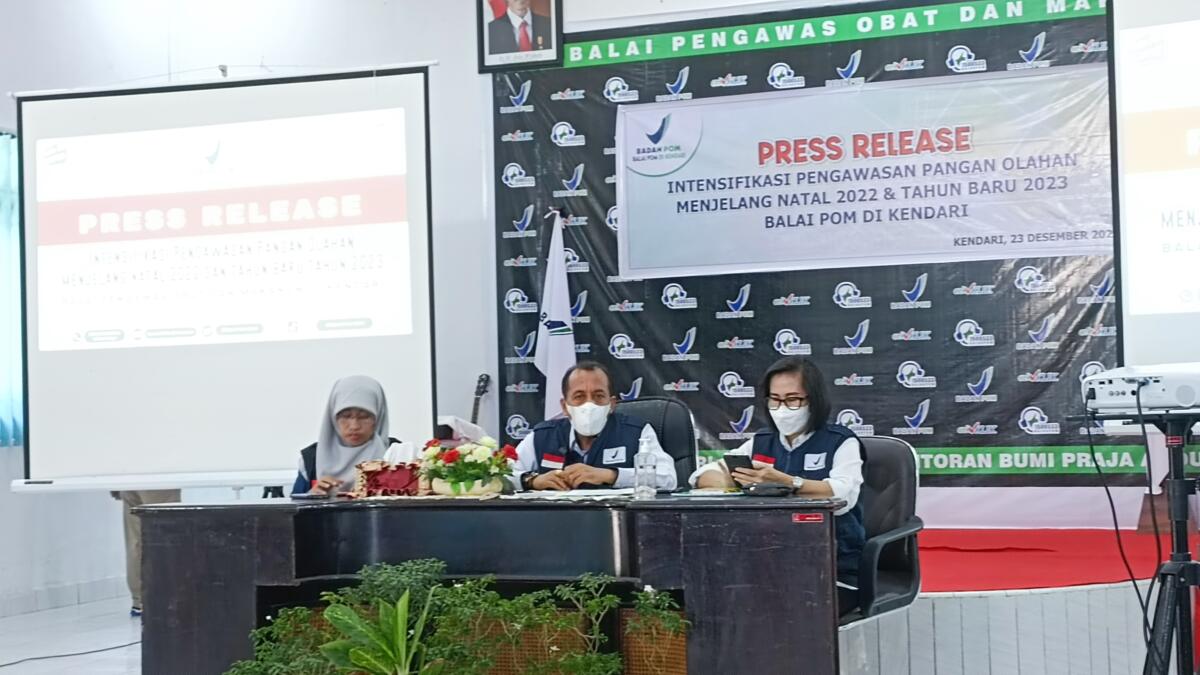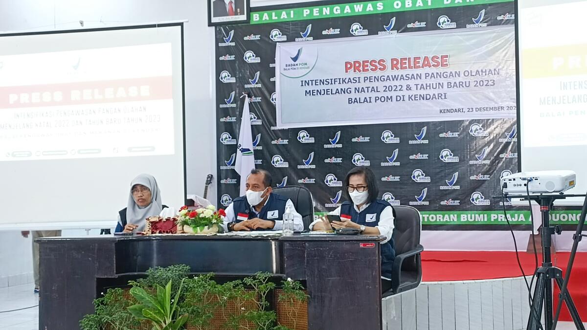 Kendari, Radarsultra.co – Balai Pengawasan Obat dan Makanan (BPOM) di Kendari melakukan intensifikasi pengawasan untuk memastikan produk pangan di peredaran aman dan bermutu dalam rangka pengawalan keamanan pangan bagi masyarakat menjelang hari raya Natal tahun 2022 dan Tahun Baru 2023.