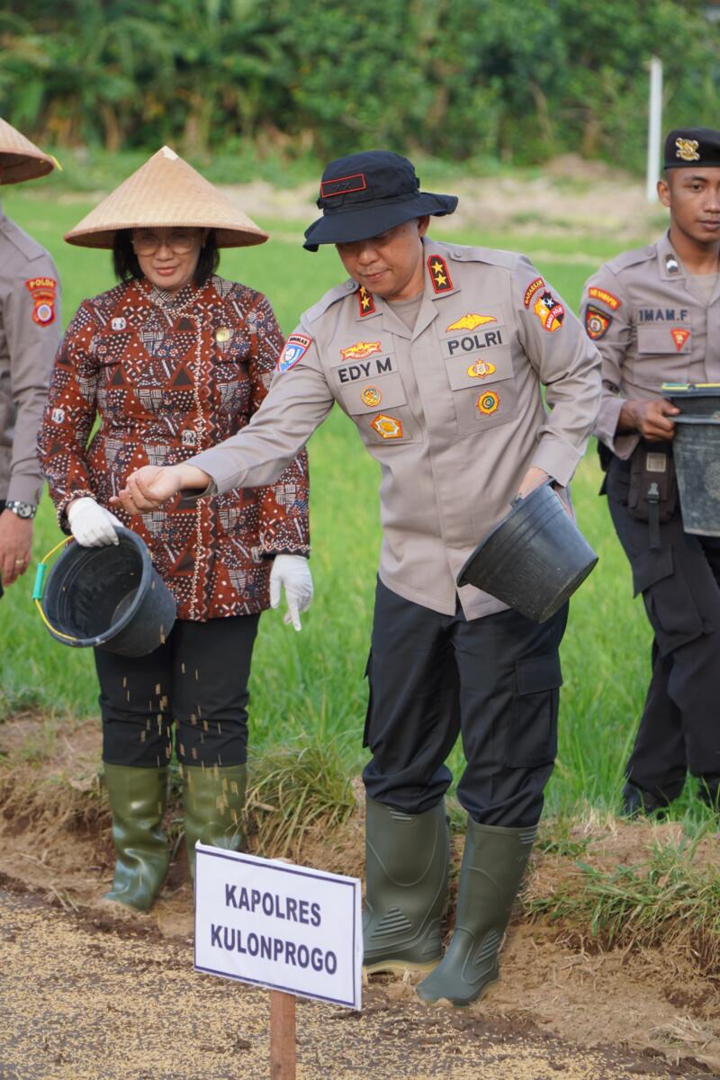 Kegiatan ini dihadiri oleh Kakorbinmas Baharkam Polri Irjen Polisi Edy Murbowo dan Penjabat Bupati Kulonprogo Srie Nurkyatsiwi, bertema “Semai Benih Padi Bangkitnya Petani Polri.”