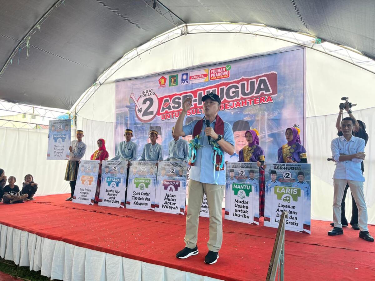 Bombana, Radarsultra.co – Pasangan Calon Gubernur dan Wakil Gubernur Sulawesi Tenggara nomor urut 2, Andi Sumangerukka (ASR) – Hugua, menggelar rangkaian kampanye di Kabupaten Bombana pada Kamis, (10/10/2024).