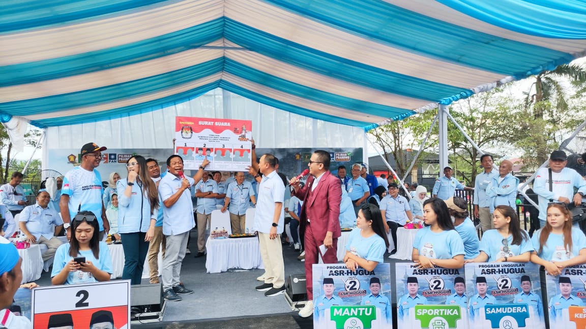 “Jadi jangan salah pilih, pilih nomor 2, ASR-Hugua,” ujar ASR sambil menunjuk alat peraga pencoblosan.
