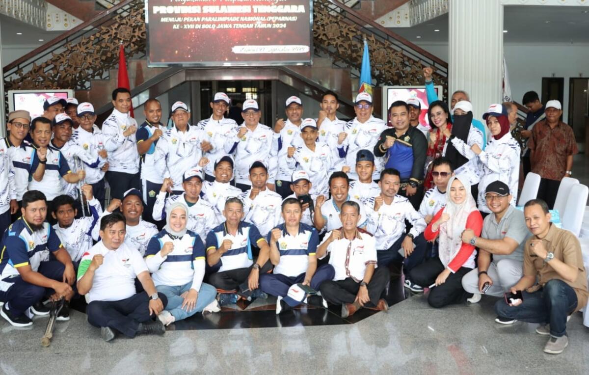 Kendari, Radarsultra.co – Pemerintah Provinsi Sulawesi Tenggara (Pemprov Sultra), yang diwakili oleh Asisten III Bidang Administrasi Umum Setda Provinsi Sulawesi Tenggara, Sukanto Toding, secara resmi melepas kontingen Sulawesi Tenggara untuk mengikuti Pekan Paralimpik Nasional (Peparnas) XVII di Solo, Jawa Tengah.