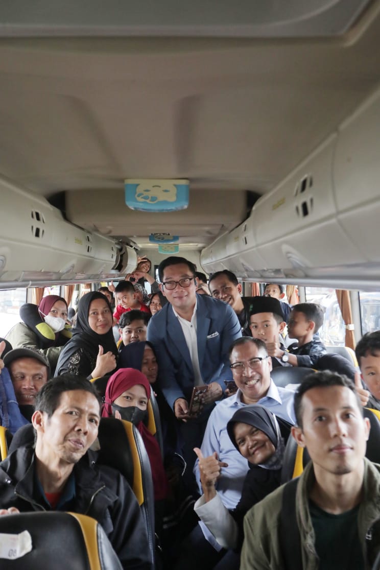 KOTA BANDUNG — Gubernur Jawa Barat Ridwan Kamil melepas program Mudik Gratis Pemda Provinsi Jawa Barat di Terminal Cicaheum, Kota Bandung, Minggu (16/4/2023).
