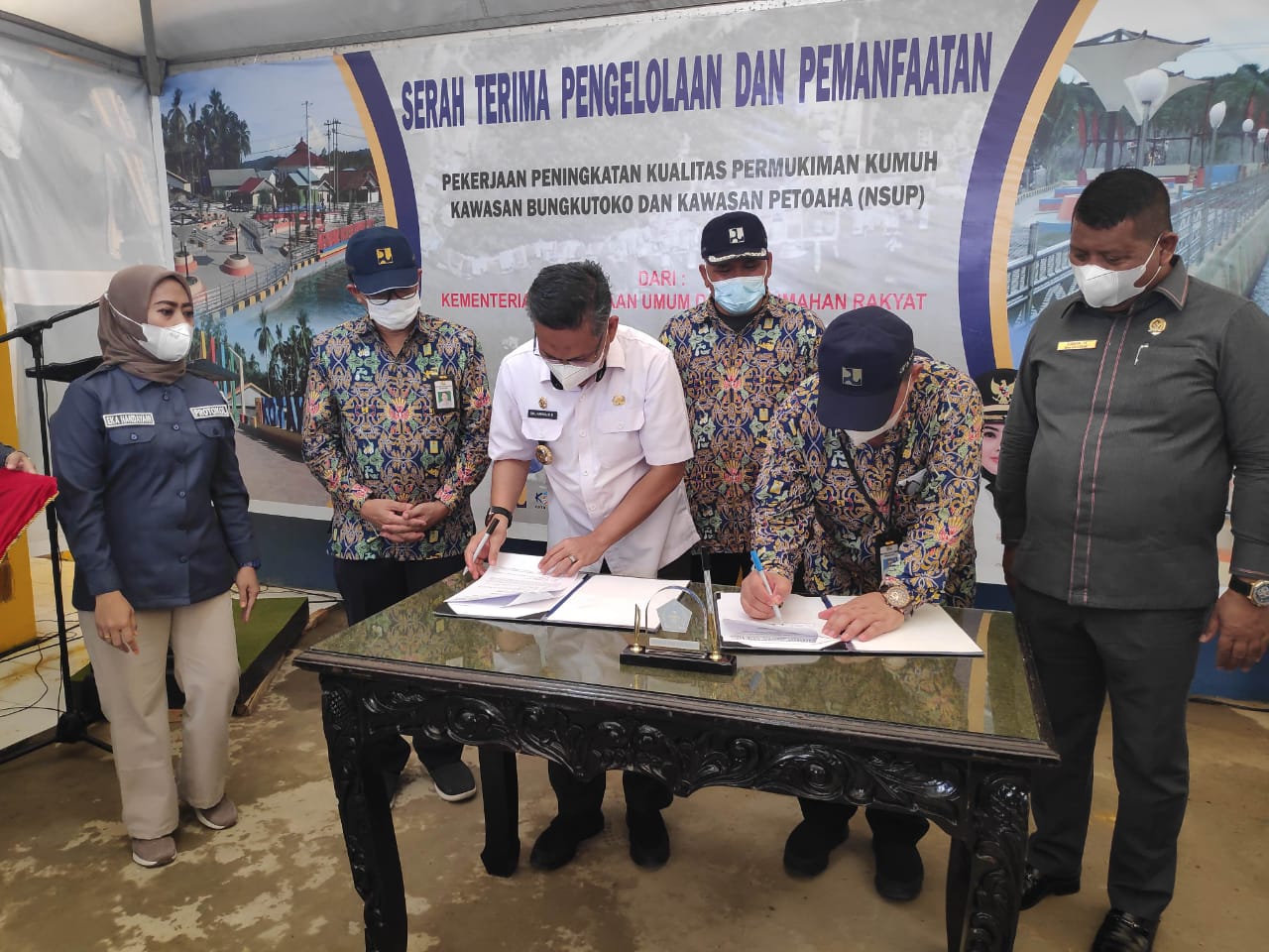 Serah terima aset tersebut dilakukan di kawasan Water Front City, Bungkutoko dengan dihadiri oleh Walikota Kendari, H. Sulkarnain Kadir berserta para pimpinan OPD lingkup Pemkot Kendari, Kepala Balai Prasarana dan Pemukiman Wilayah (BPPW) Sultra, Mustaba beserta jajarannya serta disaksikan secara virtual oleh Dirjen Cipta Karya Kementrian PUPR Diana
