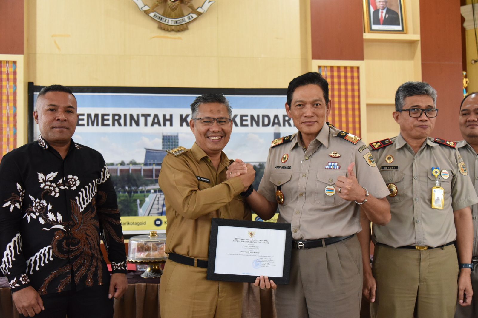Penyerahan penghargaan tersebut diserahkan oleh Kepala Badan Pertanahan Nasional (BPN) Wilayah Provinsi Sulawesi Tenggara (Sultra) yang bertempat Rumah Jabatan (Rujab) Wali Kota Kendari, Selasa (28/6/2022).