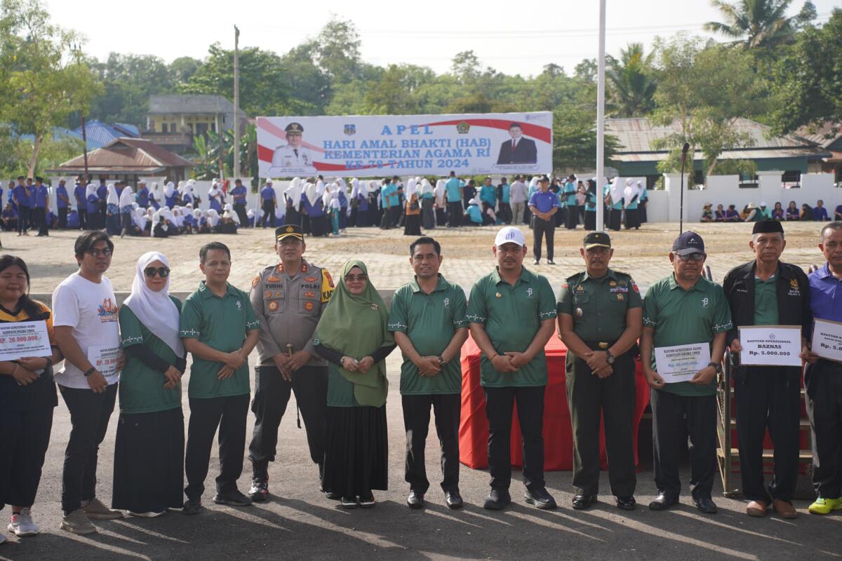 Usai memimpin apel, bupati menyerahkan sejumlah bantuan dari Kemenag Koltim, berupa bantuan operasional sekolah, bantuan operasional kepada kerukunan umat beragama dan Baznas kepada sejumlah penerima.