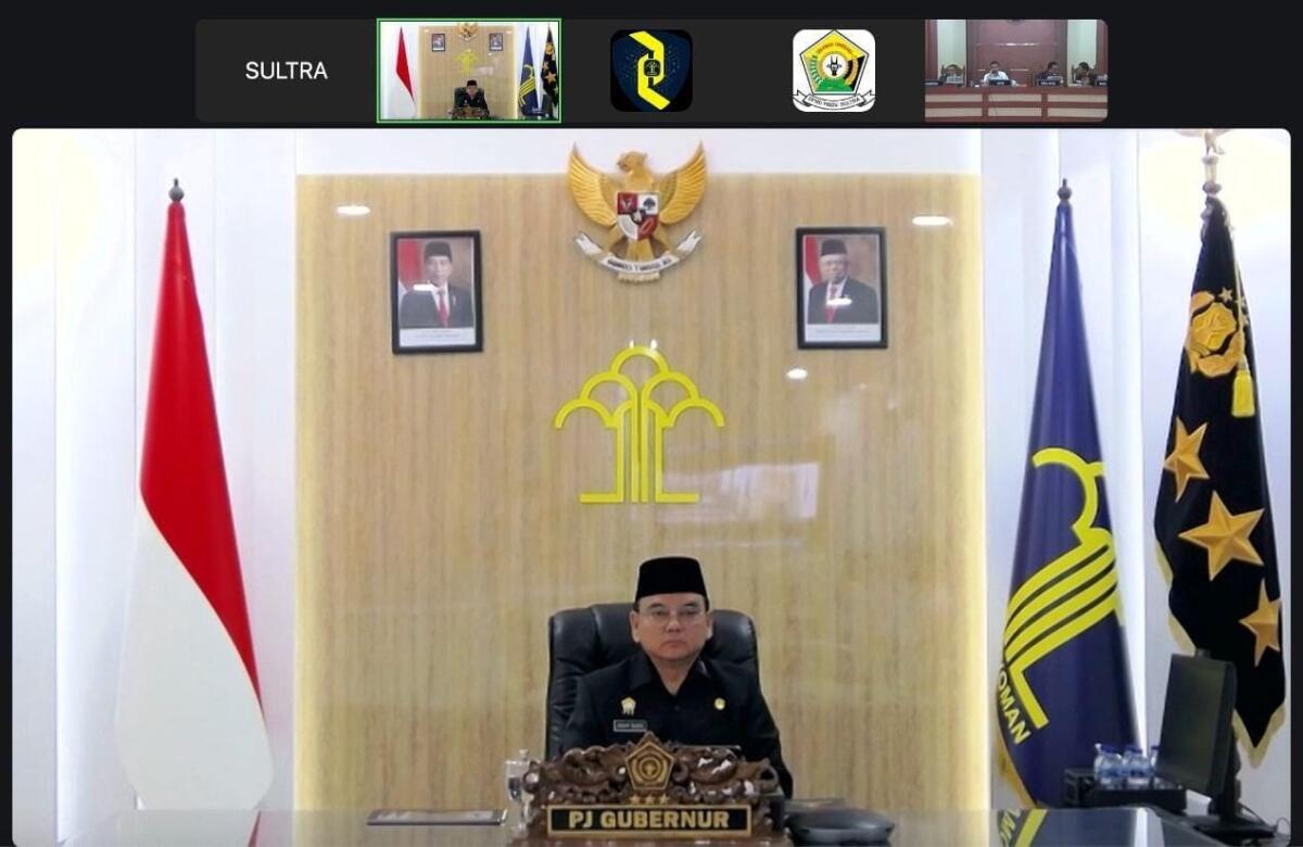 Kendari, Radarsultra.co – Penjabat (Pj) Gubernur Sulawesi Tenggara (Sultra), Andap Budhi Revianto, menghadiri Rapat Paripurna Dewan Perwakilan Rakyat Daerah (DPRD) Provinsi Sultra secara virtual pada Rabu, 25 September 2024.
