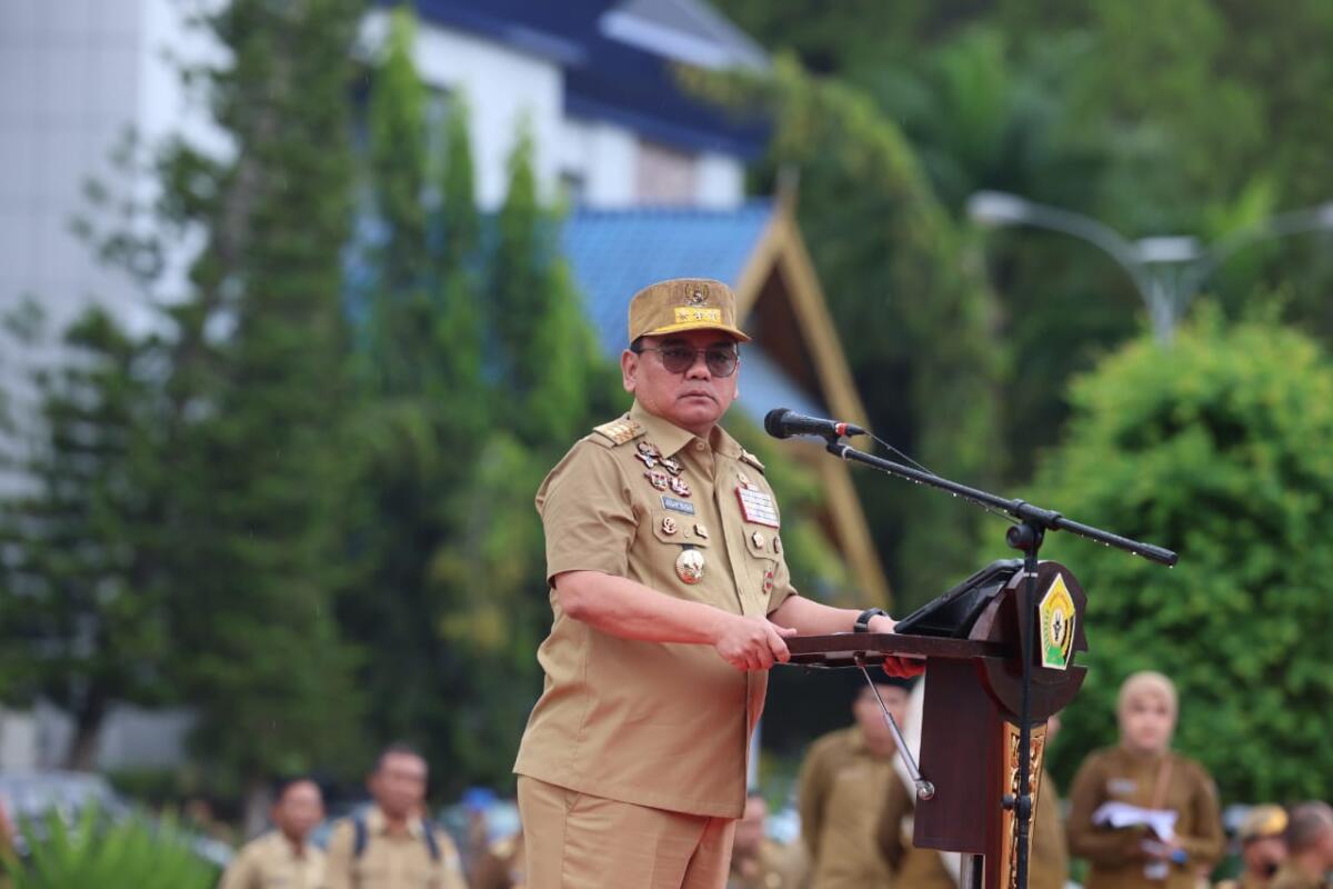 “Kita semua adalah saru gerbong pengabdian,” kata Andap saat memberikan arahan pada apel gabungan Pemprov Sultra, Senin, 11 September 2023.
