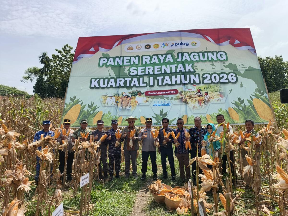 Kendari, Radarsultra.co – Kepolisian Daerah Sulawesi Tenggara (Polda Sultra) melaksanakan Panen Raya Jagung Kuartal IV Tahun 2025 di lahan binaan Polri yang berlokasi di Kelurahan Abeli Dalam, Kecamatan Puuwatu, Kota Kendari, Kamis (8/1/2026).
