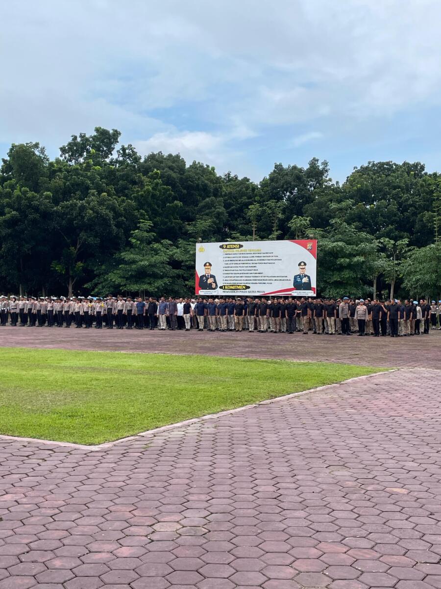 Apel gelar pasukan pengamanan digelar di Lapangan Ex MTQ Kendari dan dipimpin langsung oleh Kapolresta Kendari, Kombes Pol Eko Widiantoro, S.IK., M.Si.