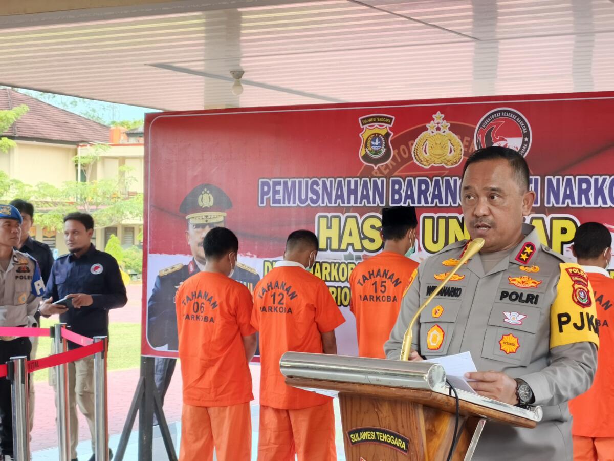 Pemusnahan dilaksanakan di tribun Presisi Polda Sultra dan dipimpin langsung oleh Kapolda Sultra, Irjen Pol Didik Agung Wijanarko.