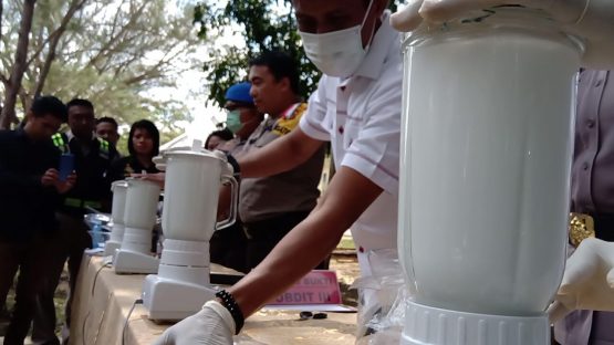 Ratusan gram Ampetamine tersebut kemudian dihancurkan dengan cara dileburkan ke dalam air yang di blender selama kurang lebih satu menit, setelah melebur, Shabu tersebut kemudian dibakar dan ditimbun di lokasi pemusnahan.
