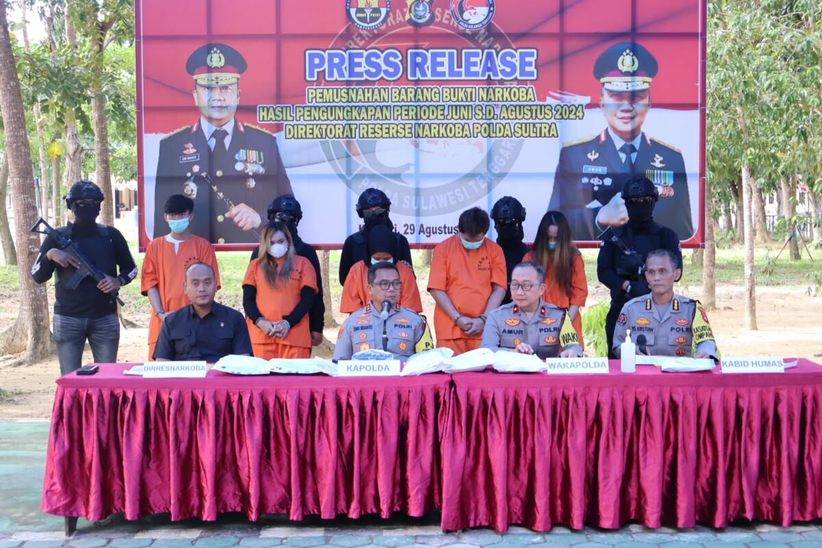 Dalam konferensi pers yang digelar hari ini, Kapolda Sultra, Irjen Pol Dwi Irianto, S.I.K., M.Si, mengungkapkan keberhasilan jajarannya dalam mengamankan lima tersangka yang terlibat dalam jaringan narkotika lintas provinsi dan internasional.