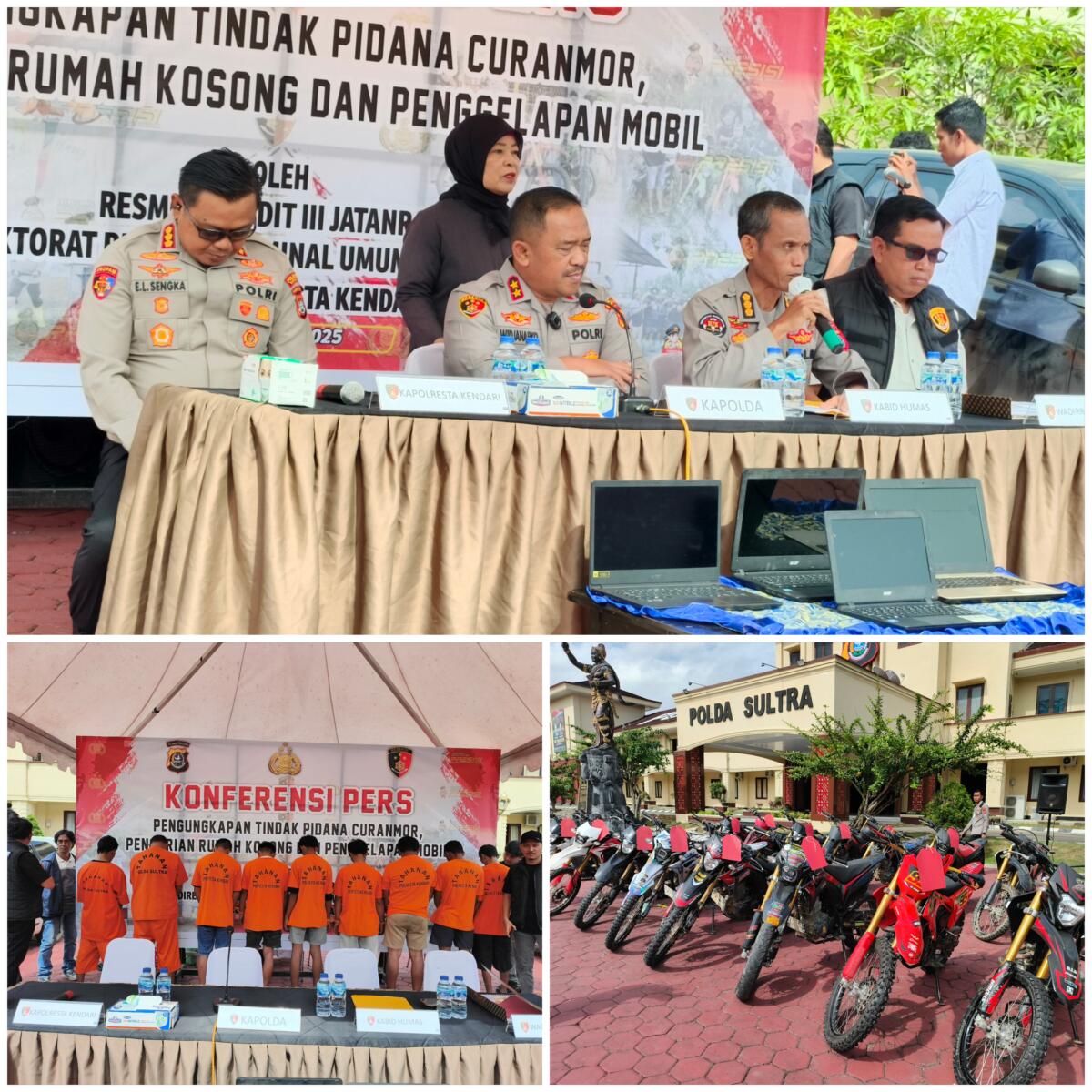 Dalam kesempatan tersebut, Kapolda mengungkap keberhasilan Tim Resmob Ditreskrimum Polda Sultra menangkap seorang pelaku berinisial OS yang terlibat dalam aksi pencurian kendaraan bermotor (curanmor) di lebih dari 50 lokasi berbeda.