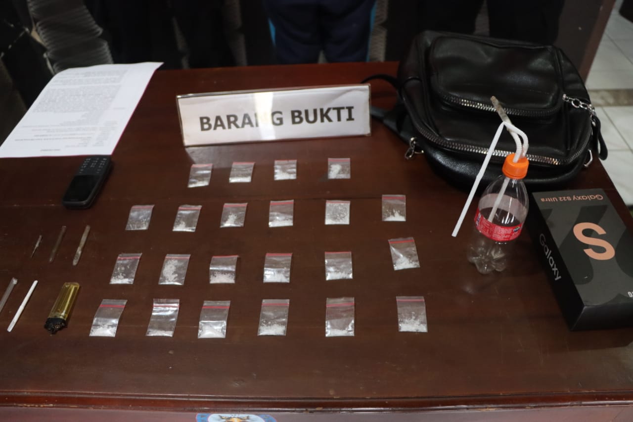 Dari hasil penangkapan, Polisi berhasil mengamankan 22 paket sabu-sabu dengan berat bruto 9,28 (sembilan koma dua delapan) gram yang ditemukan di dalam Kos-kosan tempat tinggal tersangka.