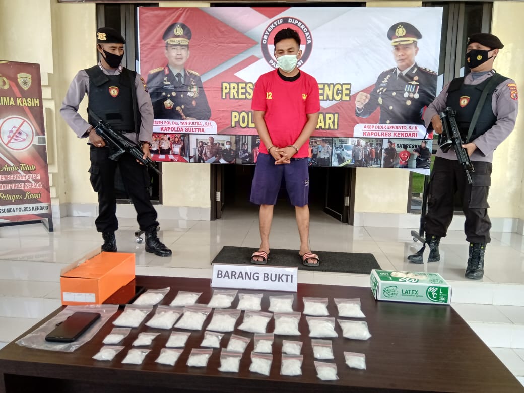 Kepala Kepolisian Resor (Kapolres) Kendari, AKBP. Didik Erfianto mengungkapkan bahwa, tersangka diketahui berinisial “I” alias “O” (28) berhasil ditangkap saat hendak bertransaksi di Jalan Haeba, Kecamatan Wua-wua, Kendari.