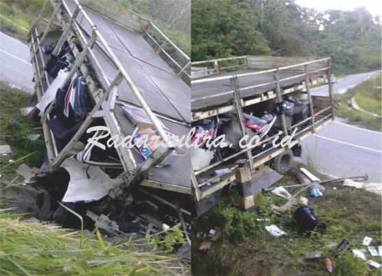 Pasca kejadian, sepeda motor yang dimuat oleh truck naas tersebut berhasil dievakuasi dibantu dengan warga sekitar dan belum diketahui pasti nilai kerugian yang dialami akibat kecelakaan tersebut. (c)