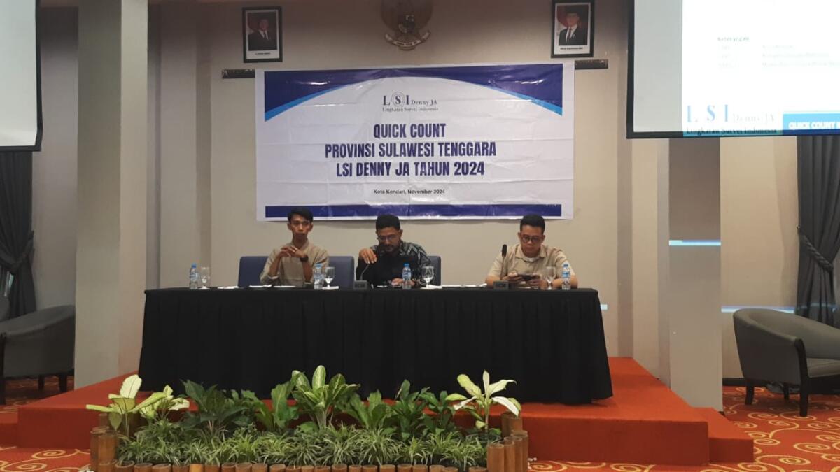 Kendari, Radarsultra.co – Dari rilis hitung cepat (quick count atau QC) yang dikeluarkan Lembaga survei Lingkaran Survei Indonesia (LSI) Denny JA terkait Pilgub Sulawesi Tenggara (Sultra) 2024 di salah satu hotel di Kota Kendari, pasangan calon nomor urut dua, Andi Sumangerukka-Hugua unggul dengan perolehan 52,45 persen. Rabu (27/11/2024).