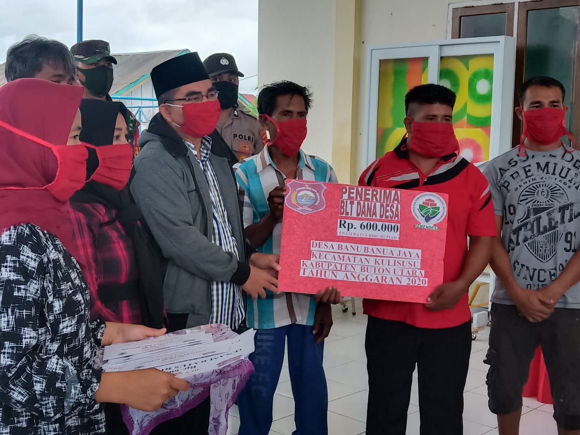 Butur, Radarsultra.co.id – Sebanyak 124 Kepala Keluarga (KK) di Desa Banubanua Jaya, Kecamatan Kulisusu, Kabupaten Buton Utara (Butur) menerima Bantuan Langsung Tunai Dana Desa (BLT-DD) yang merupakan program Kementerian Desa, Pembangunan Daerah Tertinggal, dan Transmigrasi dalam rangka jaring pengaman sosial selama masa Pandemi Corona Virus Disease 2019 (Covid-19).