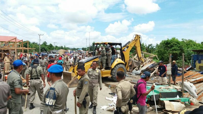 Kendari, Radarsultra.co.id – Satuan Polisi Pamong Praja (Satpol PP) Kota Kendari melakukan pembongkaran bangunan pasar panjang dengan menggunakan bantuan 1 unit alat berat.