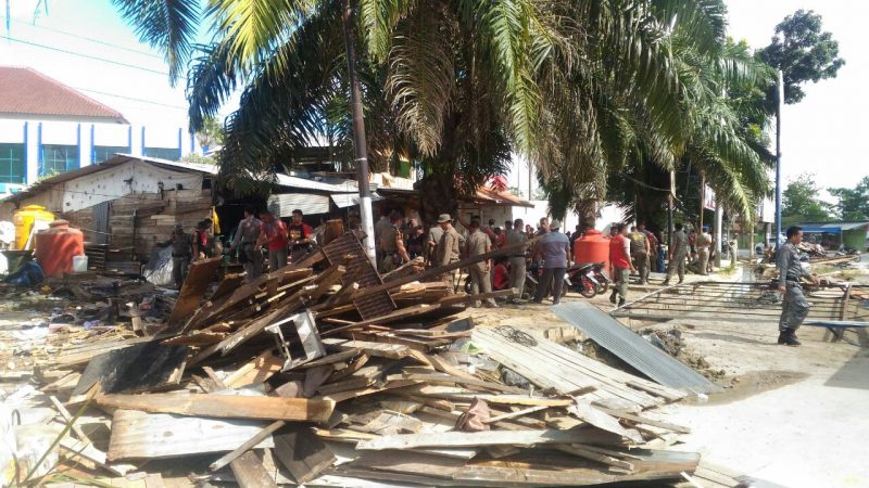 Memurut pantauan Radarsultra.co.id Sekitar empat bangunan perumahan kumuh warga yang dijadikan sebagai tempat berjualan aneka gorengan, Sari Laut dan makanan siap saji tampak diratakan dengan tanah.