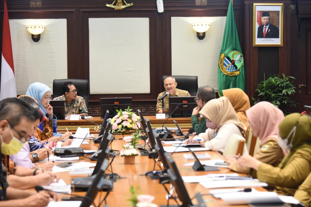 KOTA BANDUNG — Sekretaris Daerah Provinsi Jawa Barat Setiawan Wangsaatmaja menerima kunjungan kerja Badan Legislasi (Baleg) DPR RI di Ruang Rapat Papandayan Gedung Sate, Kota Bandung, Senin (10/4/2023). Kunjungan kerja Baleg DPR RI dalam rangka penyusunan naskah akademik dan Rancangan Undang-Undang tentang Statistik.