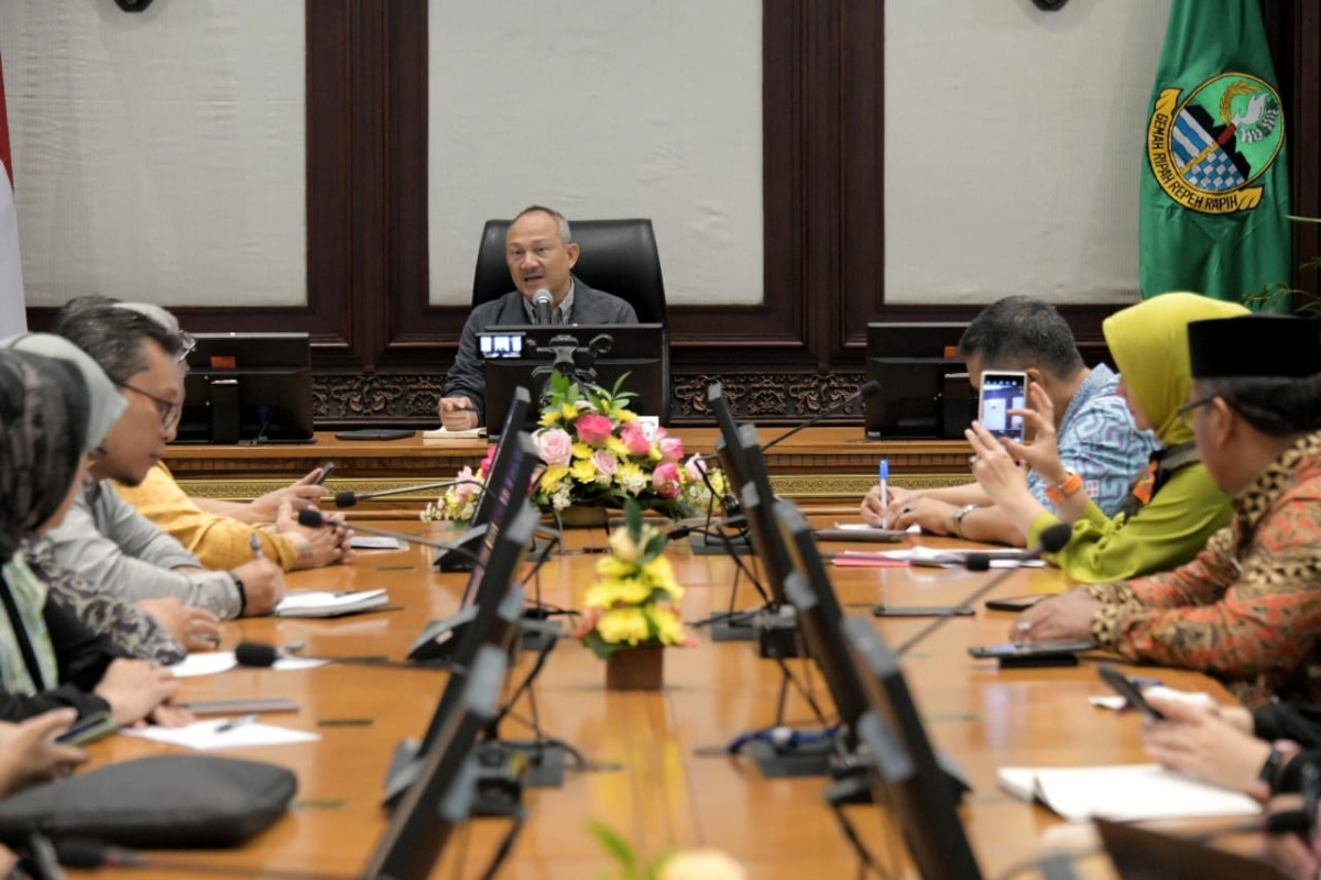KOTA BANDUNG – Sekretaris Daerah Provinsi Jawa Barat Setiawan Wangsaatmaja membuka acara Pembinaan dan Penyelenggaraan Kabupaten/Kota Sehat di Jawa Barat, di Gedung Sate, Kota Bandung, Kamis (6/4/2023).