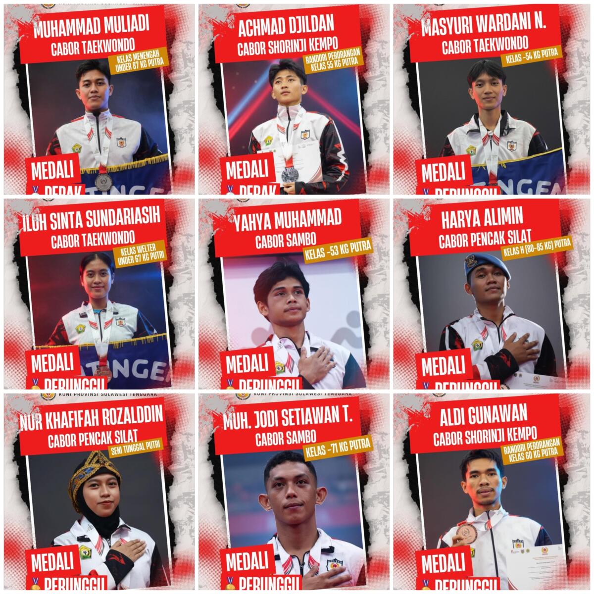 Berikut nama-nama atlet yang berhasil menyumbangkan medali untuk Sulawesi Tenggara: