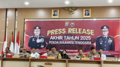 Kendari, Radarsultra.co — Kepolisian Daerah Sulawesi Tenggara (Polda Sultra) menggelar press release akhir tahun 2025…