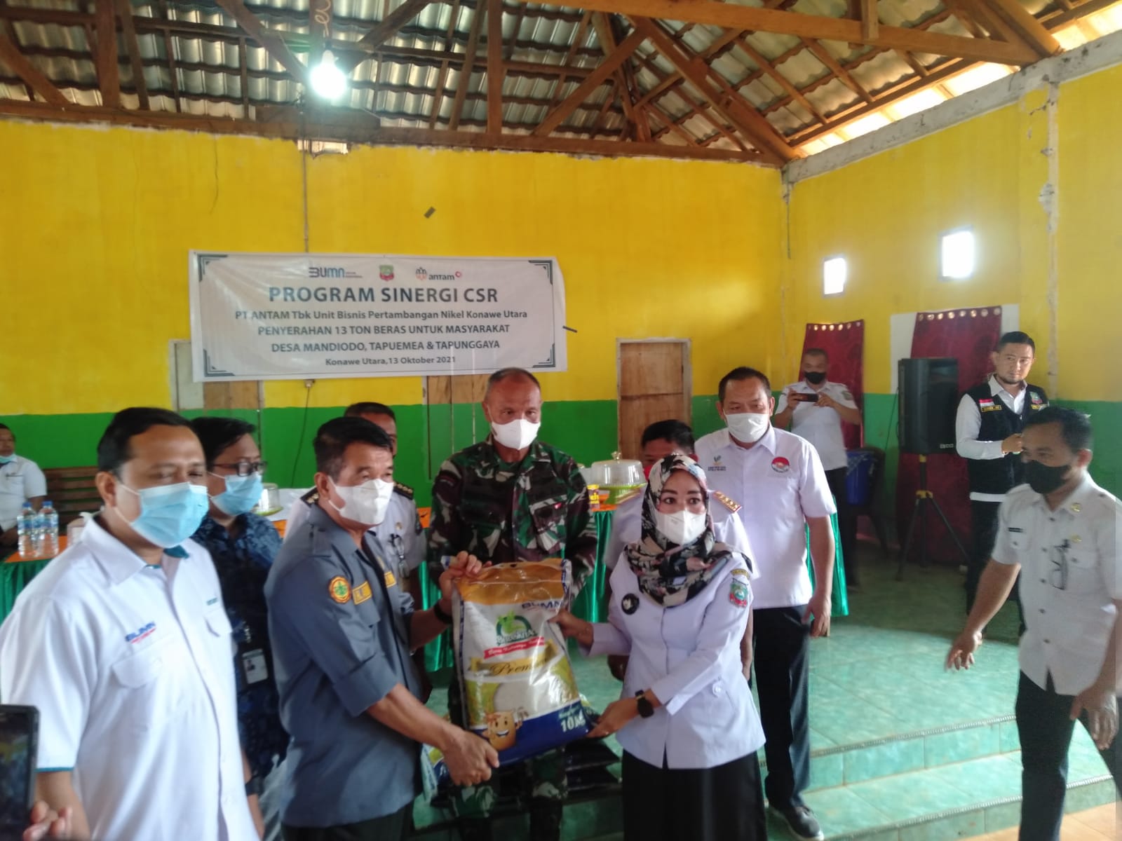 Penyerahan tersebut dilakukan secara simbolis, berlangsung di Balai Desa Tapuemea Kecamatan Molawe, oleh PT Antam disaksikan oleh Pemerintah Daerah (Pemda) Konut yang dihadiri Wakil Bupati (Wabup) Konut Abu Haera, Forkopimda, Staf Ahli, GM PT Antam, Kadis Sosial, Camat Molawe, Kepala Desa yakni, Desa Tapuemea, Tapunggaya dan Mandiodo.