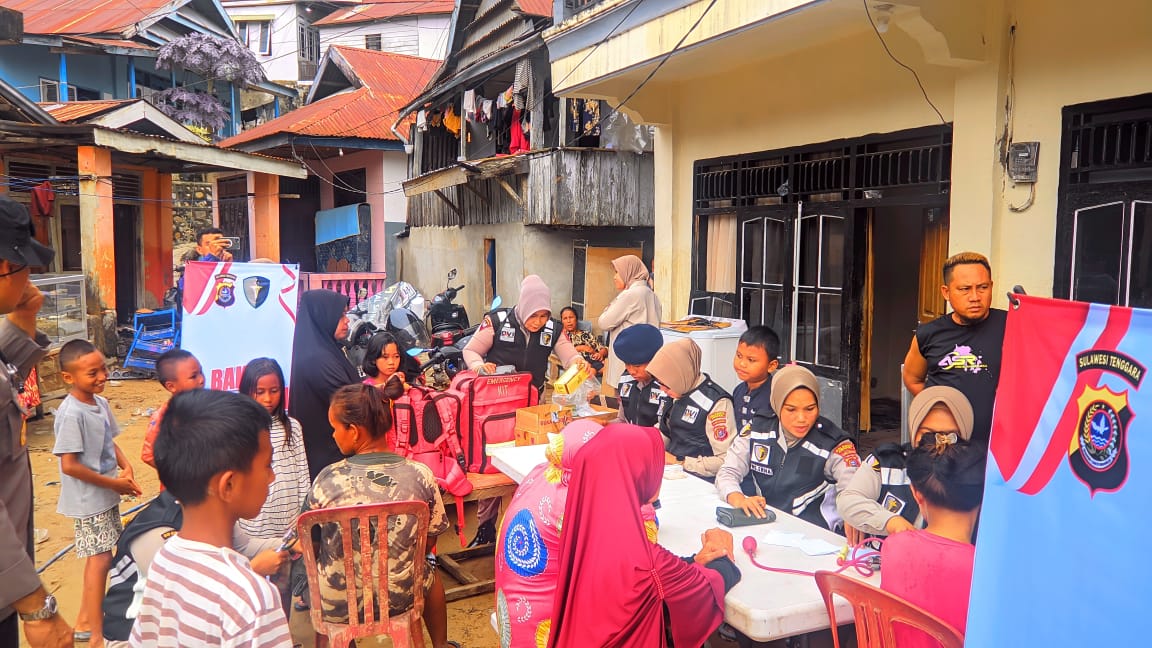 Kegiatan tersebut juga melibatkan tim medis dari Klinik Teratai Brimob dan Klinik Polresta Kendari, yang memberikan pelayanan kesehatan gratis kepada masyarakat yang membutuhkan.