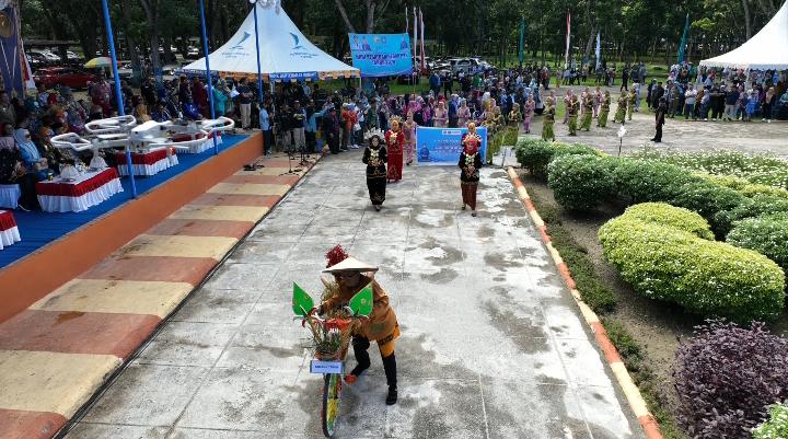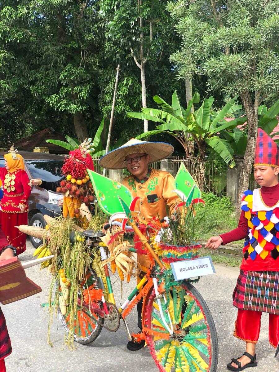 Dalam defile yang menghadirkan berbagai macam penampilan dari berbagai kabupaten dan kota di Sulawesi Tenggara ini, TP. PKK Kabupaten Kolaka Timur (Koltim) yang berada dibawah kepimpinan Hartini Azis, AMa, menampilkan satu buah sepeda ontel yang telah dibalut dengan pernak pernik khas dari Koltim sendiri, serta tak lupa juga diisi dengan muatan berupa sejumlah komoditas dari Koltim seperti singkong dan padi.