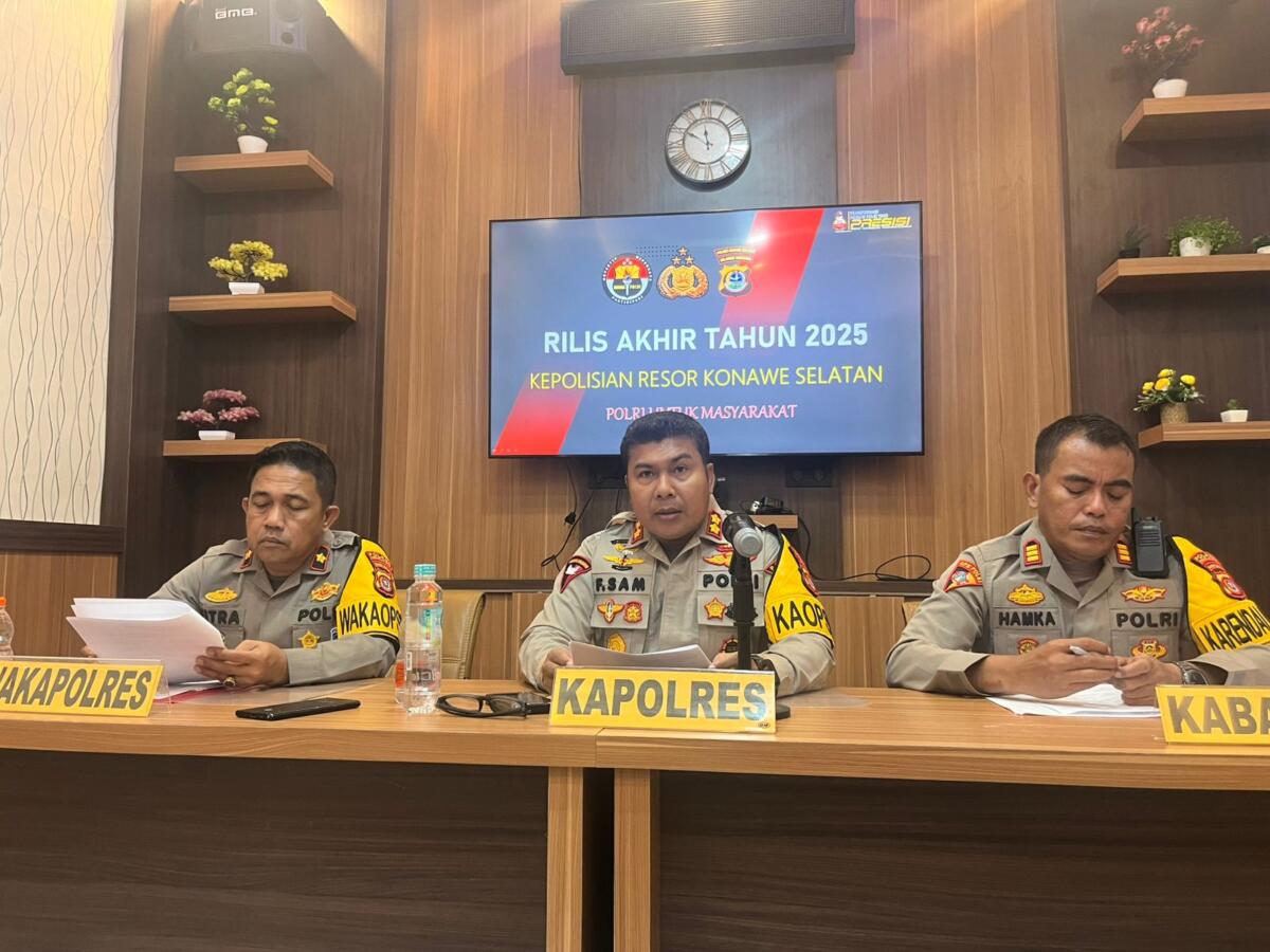 Kapolres Konawe Selatan, AKBP Febry Sam, mengungkapkan bahwa angka tersebut menunjukkan tren peningkatan dibandingkan tahun sebelumnya. Hal itu disampaikannya saat konferensi pers evaluasi akhir tahun, Rabu (31/12/2025).