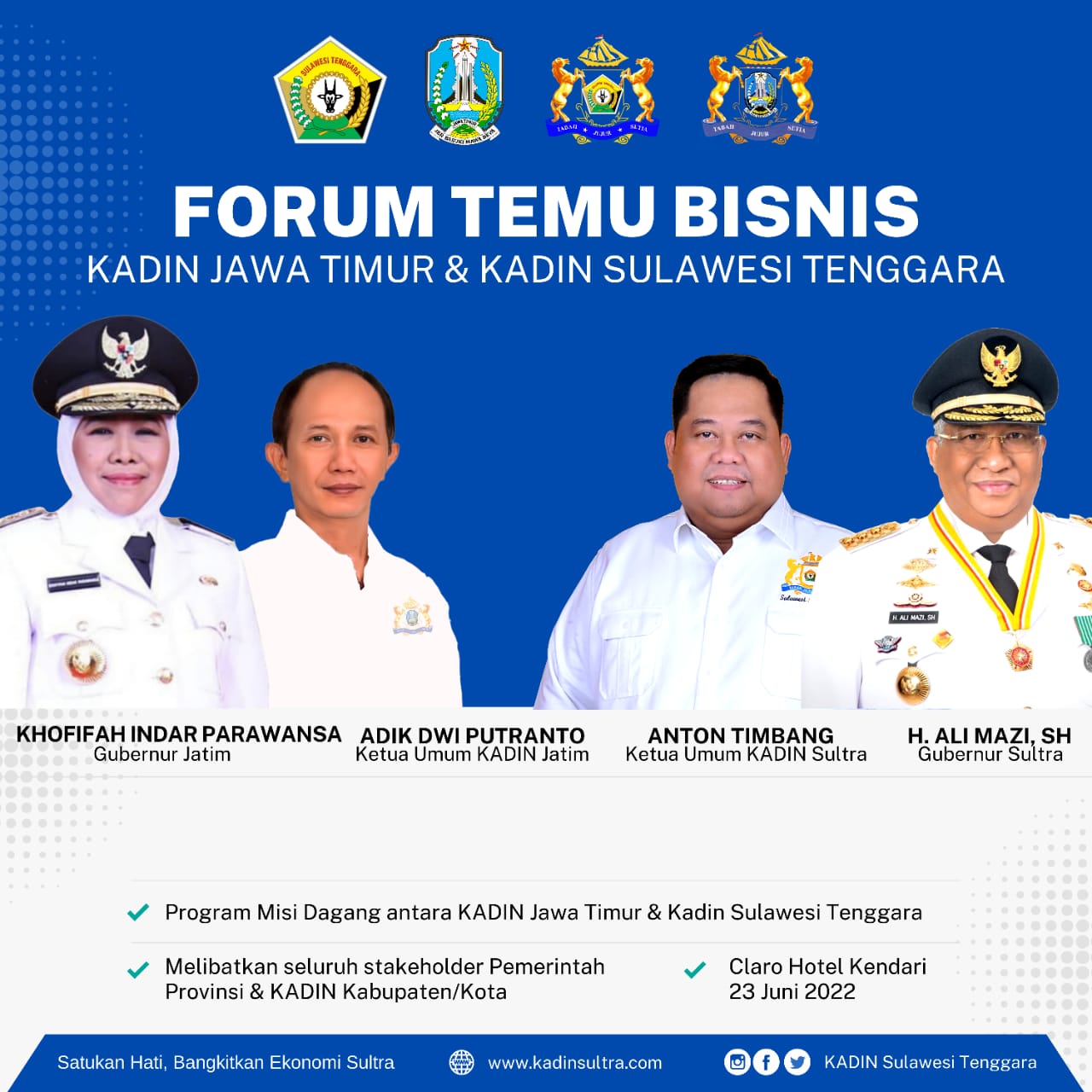 nantinya akan mempertemukan pelaku usaha asal Prov. Jatim dengan pelaku usaha asal Prov. Sultra pada Kamis, 23 Juni 2022 di Kendari nanti.